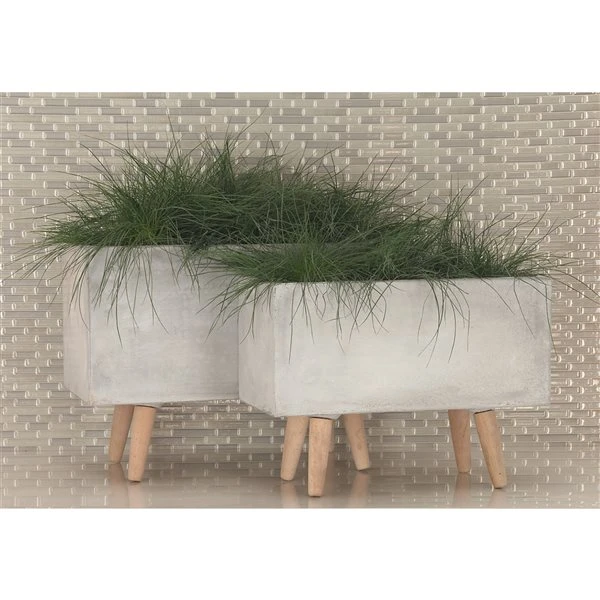 Grayson Lane 21-in x 15-in Grey Clay Planters – Set of 2