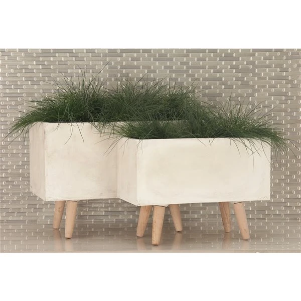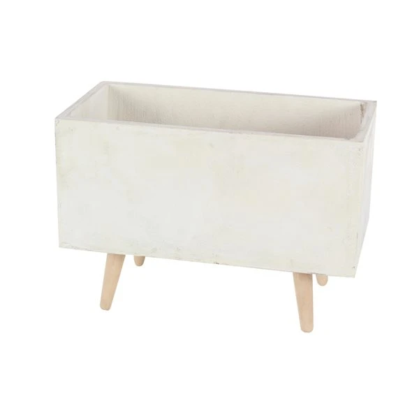 - These plant pots’ white and natural wood hues will work with any colour palette in your home, featuring simple rectangular shapes and mid-century legs