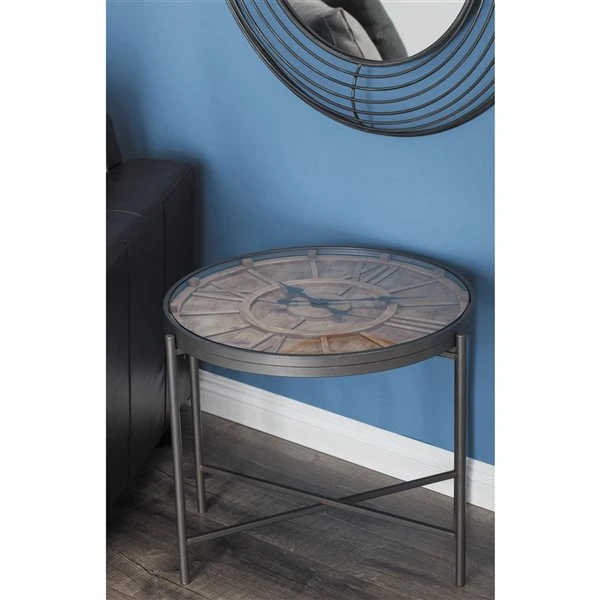 Grayson Lane 21-in x 25-in Brown Wood Industrial Round End Table with Working Clock
