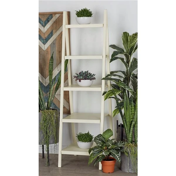 - This ladder shelf has 5 tiers that allow it to hold sculpture figurines, indoor plants, picture frames and more