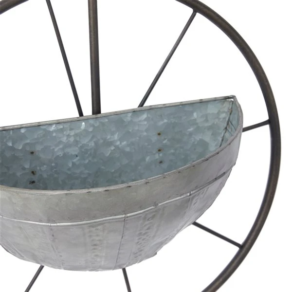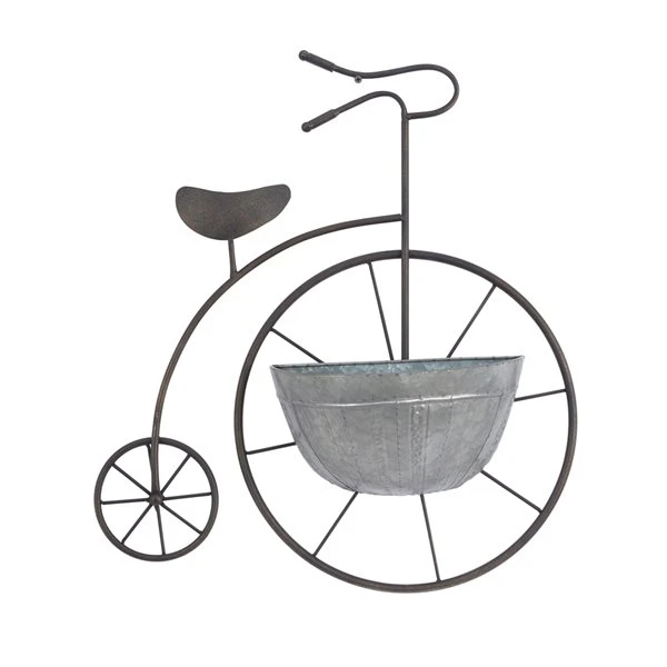 - Bicycle-inspired wall decoration with a semi-circular basket planter