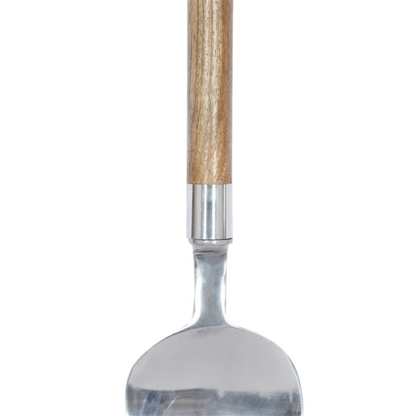- Each utensil features a natural brown and polished silver finishes