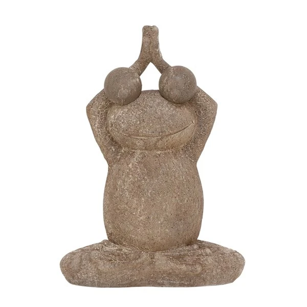 - Seated plump frog statue made from polystone in a brown stone-like finish