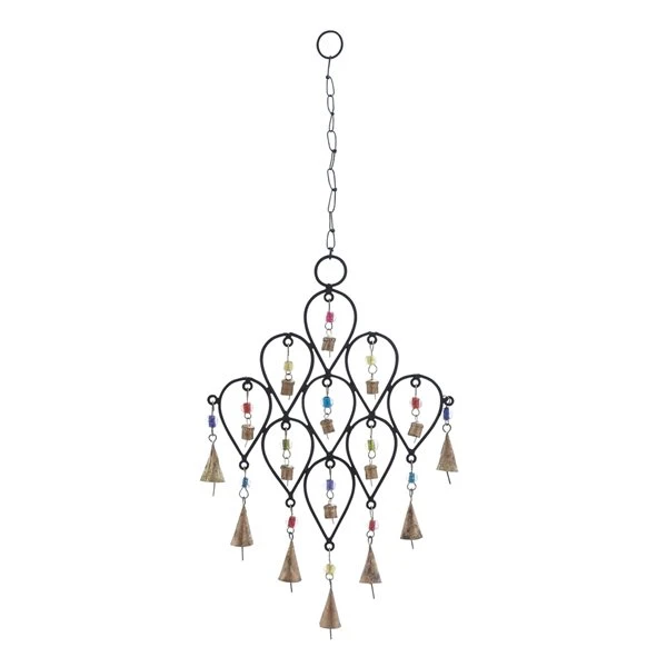 Grayson Lane 24-in Bohemian Black Metal Reversed Teardrop with Bells Wind Chime