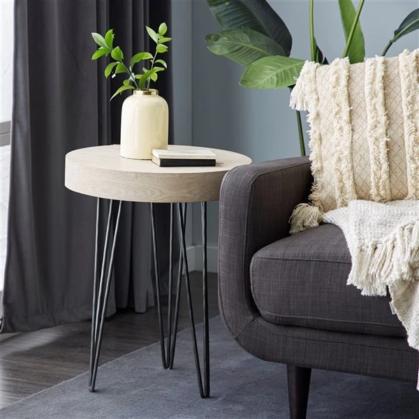 - It features a smooth round thick solid top with sturdy hair pin leg base