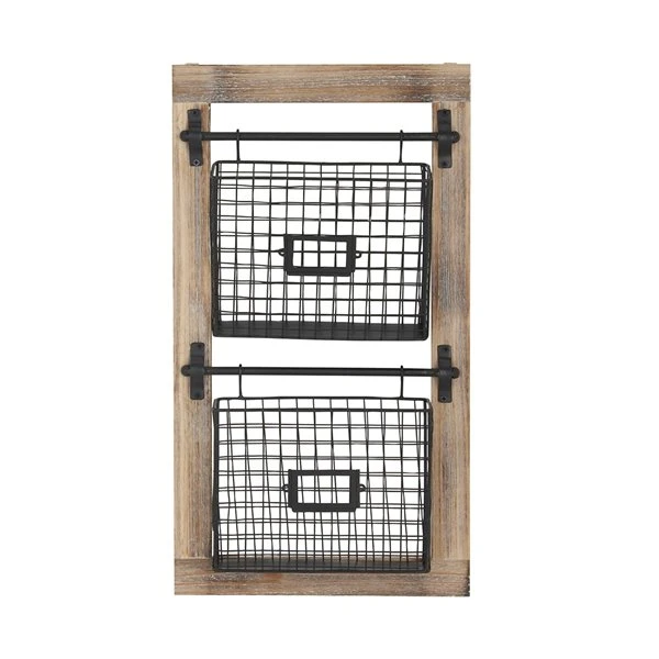 Grayson Lane 35-in x 24-in Brown Wood Industrial Wall-Mounted Shelf