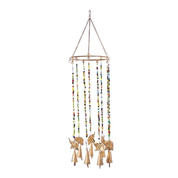 Grayson Lane 26-in Gold Metal Elephant Wind Chime with Bells and Multicoloured Glass Beads