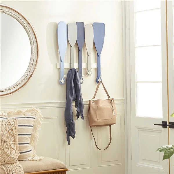 Grayson Lane 26-in x 23-in Blue Coastal Wood Wall Hook Rack