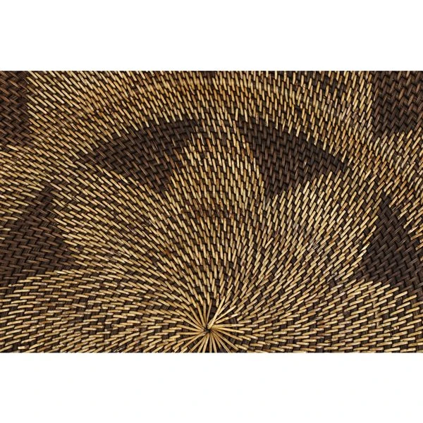 - Star-shaped patterns and small stitches of alternating beige and brown rattan