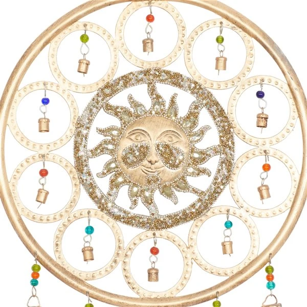 - The frame and bells have a gold finish, and the beads are in multiple colours, bells on the circular frame will ring when a breeze passes through