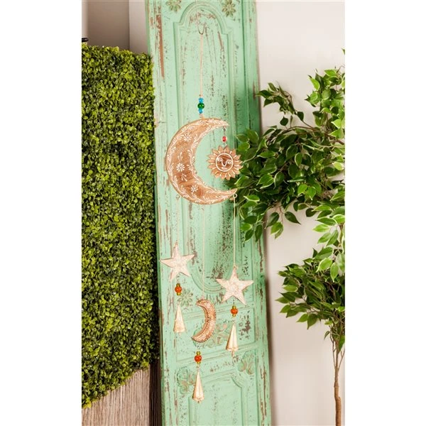 Grayson Lane 27-in Gold Wood Moon Sun and Stars Wind Chime