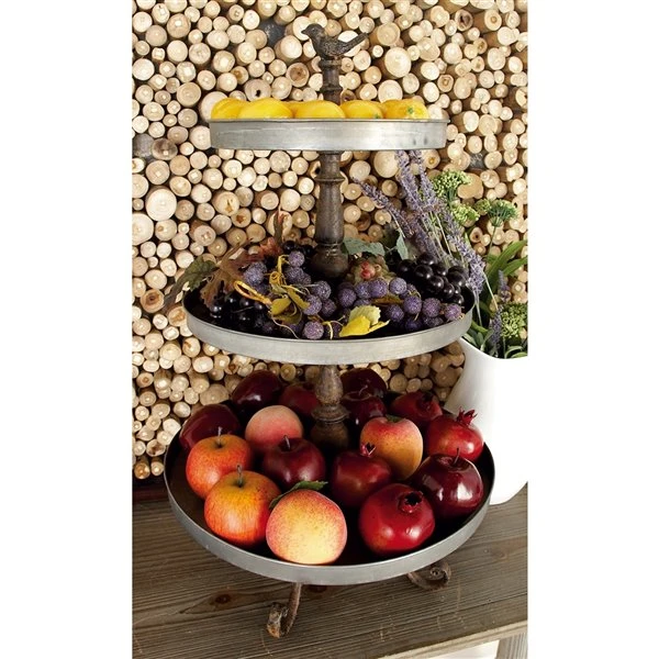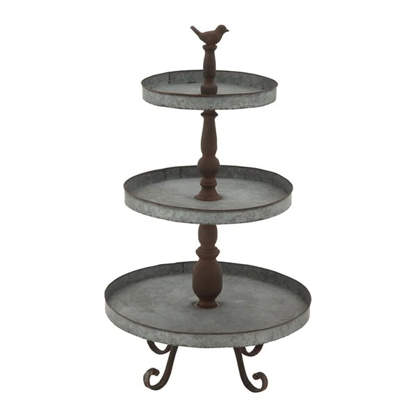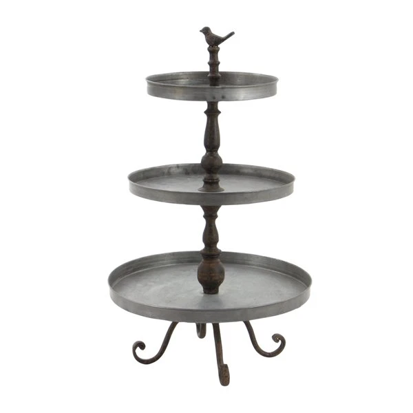 GRAYSON LANE 28 In. x 16 In. Farmhouse 3 Tier Tray Stand Silver Iron