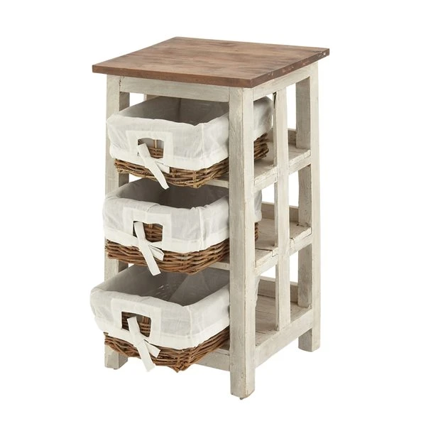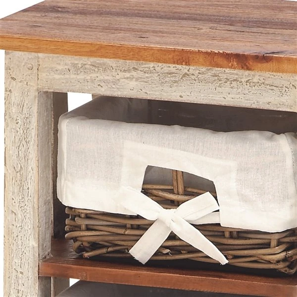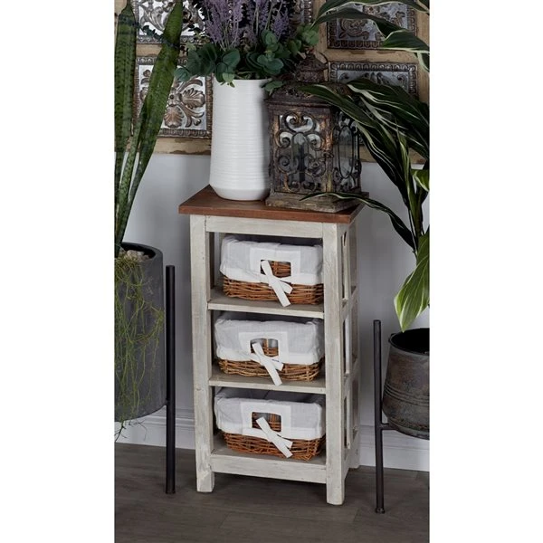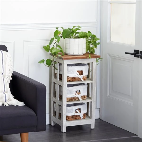 Grayson Lane 29-in x 15-in White Wood Farmhouse End Table with Rattan Baskets