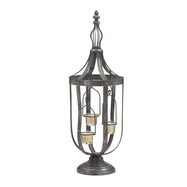 Grayson Lane 3-Candle Grey Metal Lantern Candle Holder