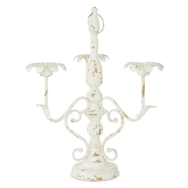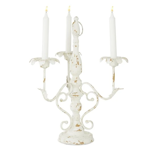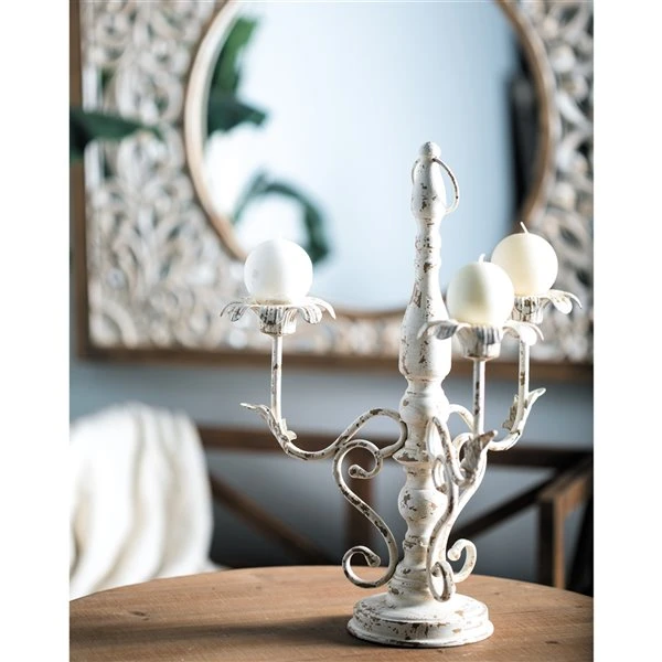 - Add instant warmth and inviting ambiance to your home with this white metal candle holder that is a great addition to vintage interior.