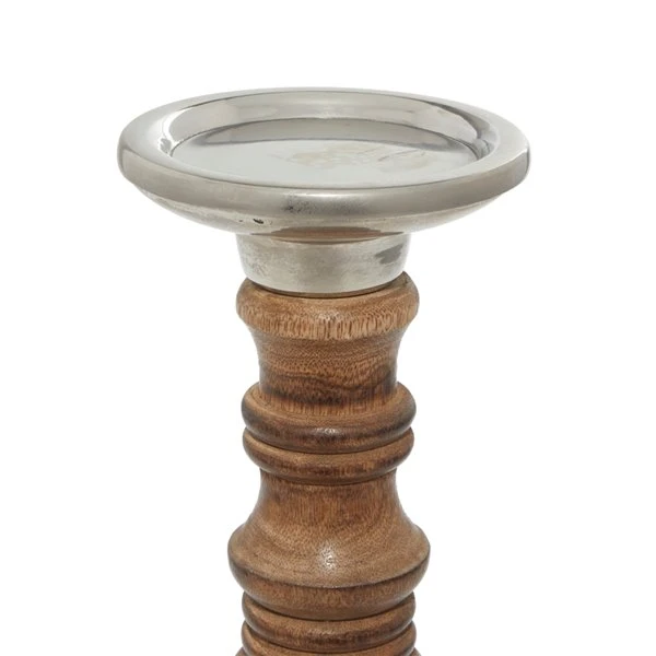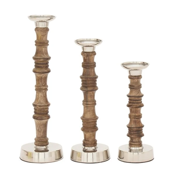 - This versatile set of candle holders are crafted with mango wood and aluminum materials
