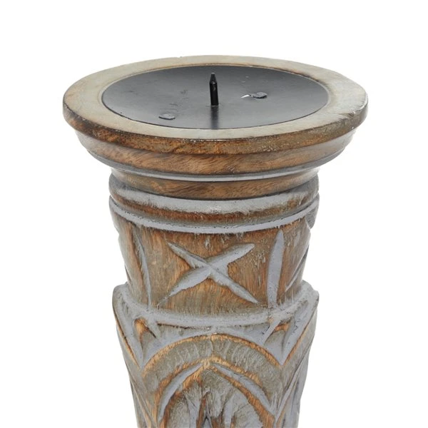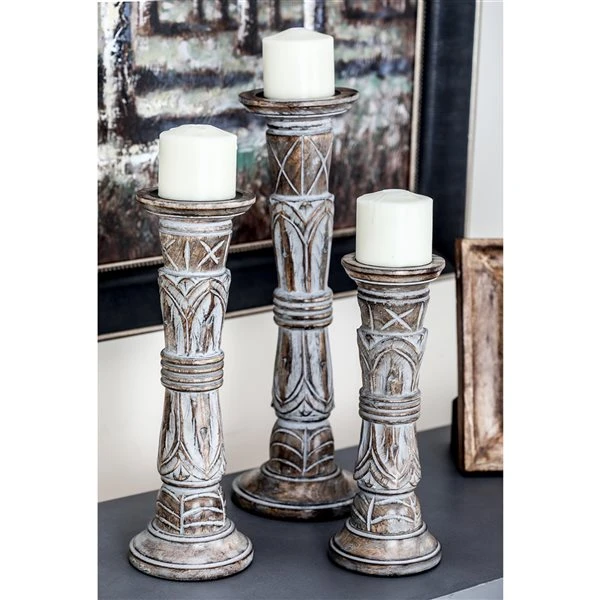 - This brown candle holder set is composed of solid mango wood