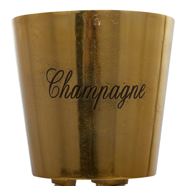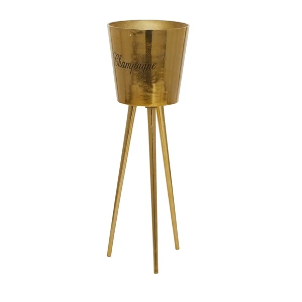 - Entertain in style or use as a storage display to keep your bottled beverages cool and protected on any surface with this standing gold wine bucket