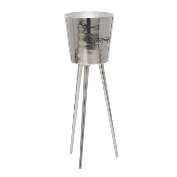 - Entertain in style or use as a storage display to keep your bottled beverages cool and protected on any surface with this silver standing wine bucket