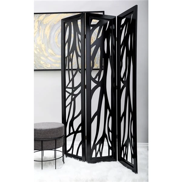 Grayson Lane 3-Panel Black Wood Folding Eclectic Style Room Divider