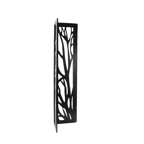 - Showcases a textured black finish and pierced branch design