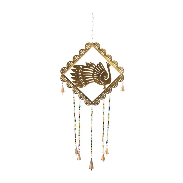 Grayson Lane 30-in Gold Metal Peacock Wind Chime with Multicoloured Glass Beads