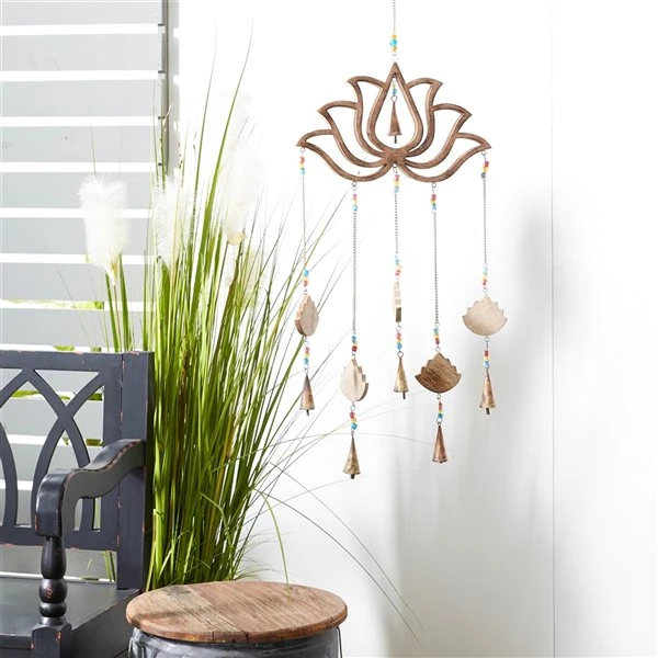 Grayson Lane 30-in Gold Wood Lotus Flower Wind Chime with Cone-Shaped Bells