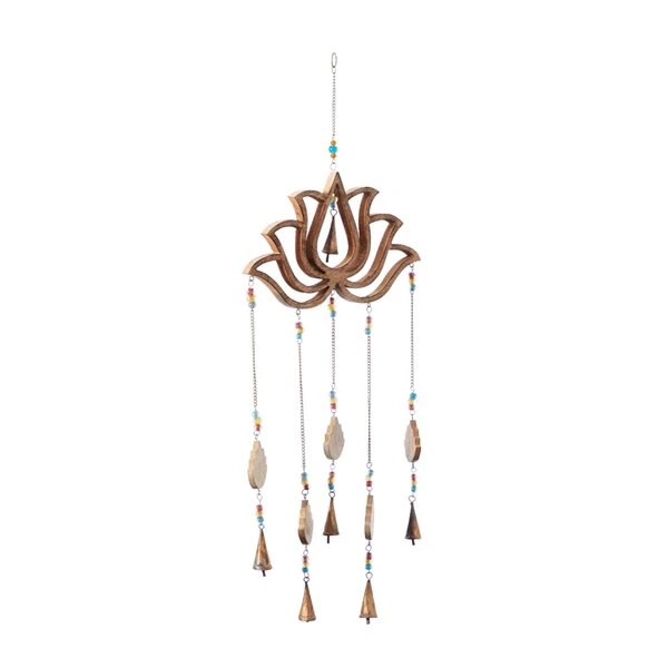 - Features a lotus-inspired design with multicoloured glass bead accents and six hanging bells