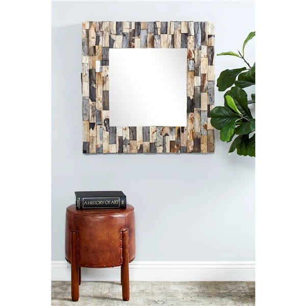 - This coastal style inspired wall mirror features a square frame of fossil stones in a textured detail with a highly reflective glass material