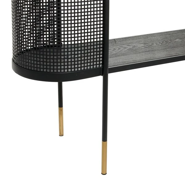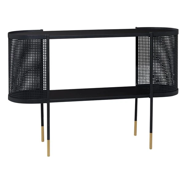 - This elegant contemporary black metal console table will make a bold statement of style in your living room when paired with matching decor
