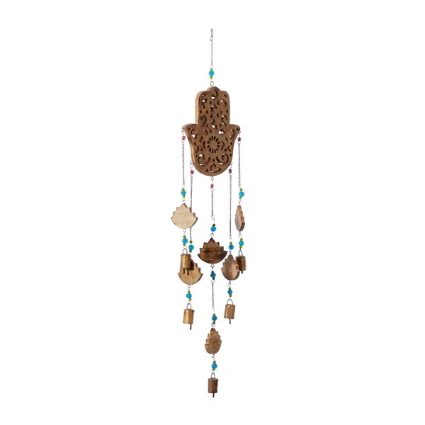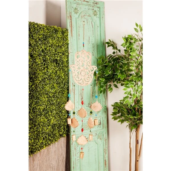 Grayson Lane 32-in Gold Wood Hamsa Hand Wind Chime with Blue Beads