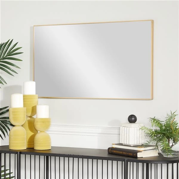 Grayson Lane 32-in x 18-in Rectangle Gold Contemporary Framed Wall Mirror