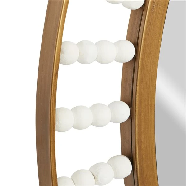 - Sunburst-inspired wooden bead exterior frame design and a metallic base structure