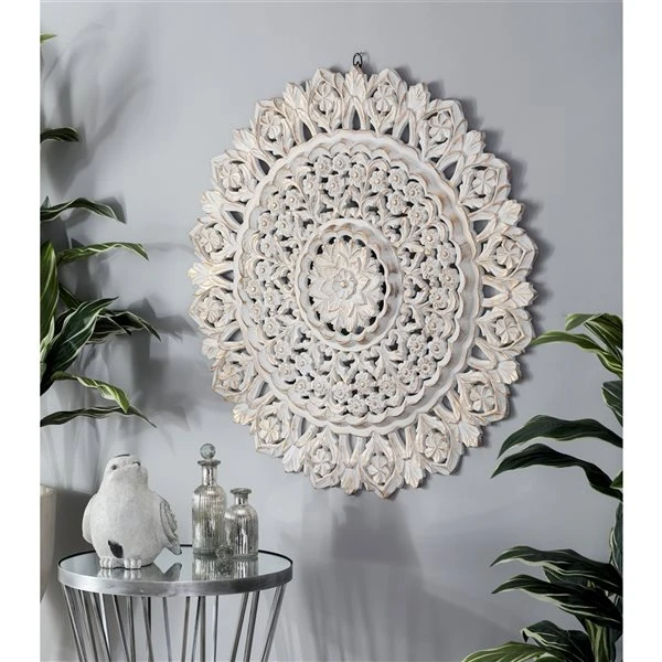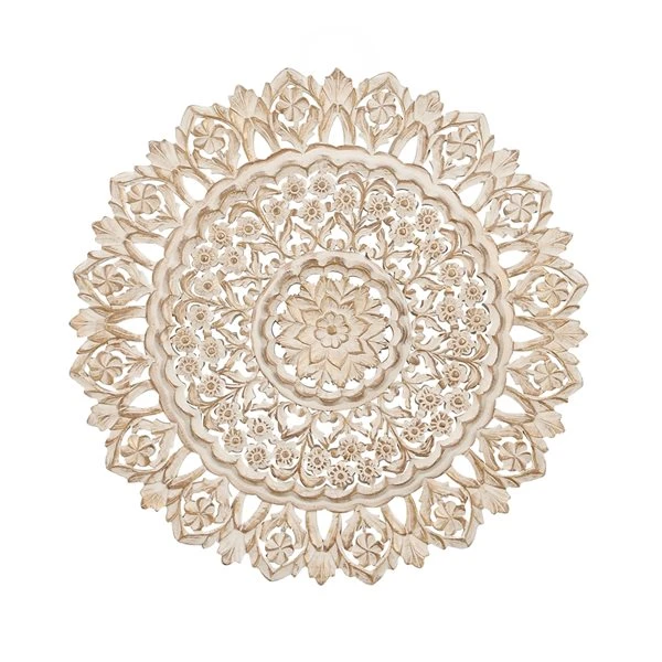 - Features an elaborate carving work of flowers and leaves arranged in a circular pattern