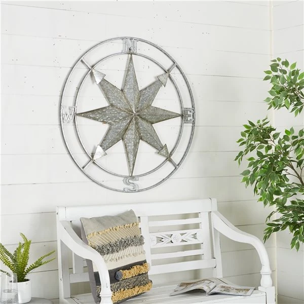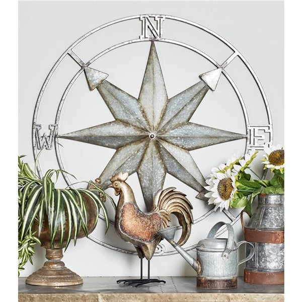 - Features four metal tips, eight spokes, and N, E, S, W cardinal directions