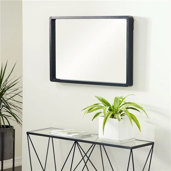 - This rectangular mirror comes in a black finish