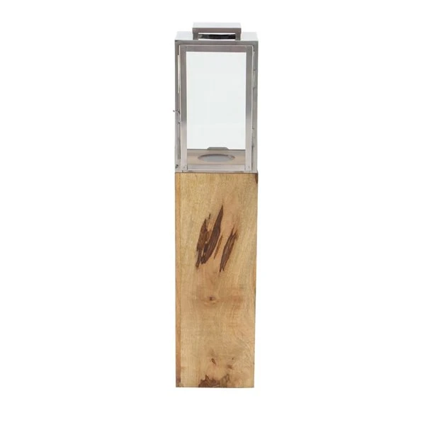 - This floor candle lantern candle holder is harmonious medley of mango wood, clear glass, and stainless steel
