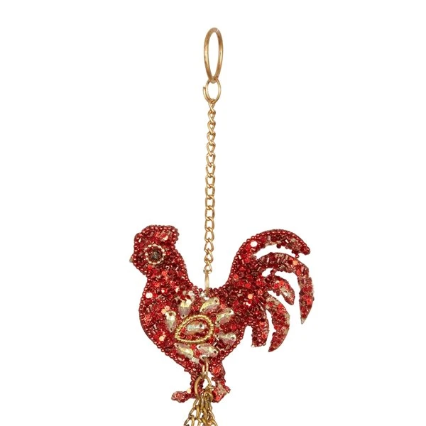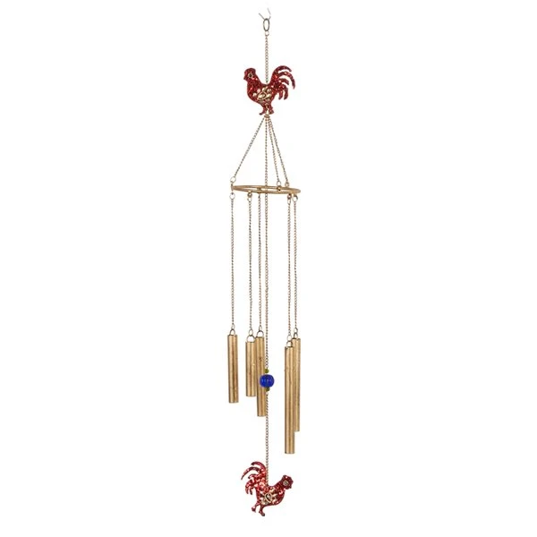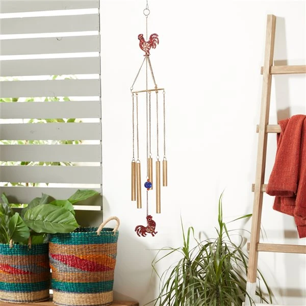 Grayson Lane 37-in Gold Metal Red Rooster Wind Chime with Sequined Details
