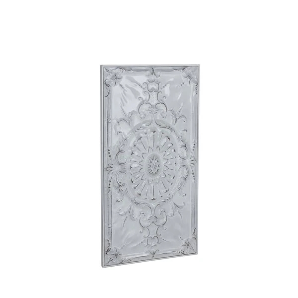 - Features embossed scrollwork forming a large flower