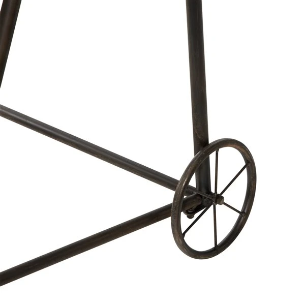 - Features a galvanized gray iron finish with brown riming’s and a black iron stand