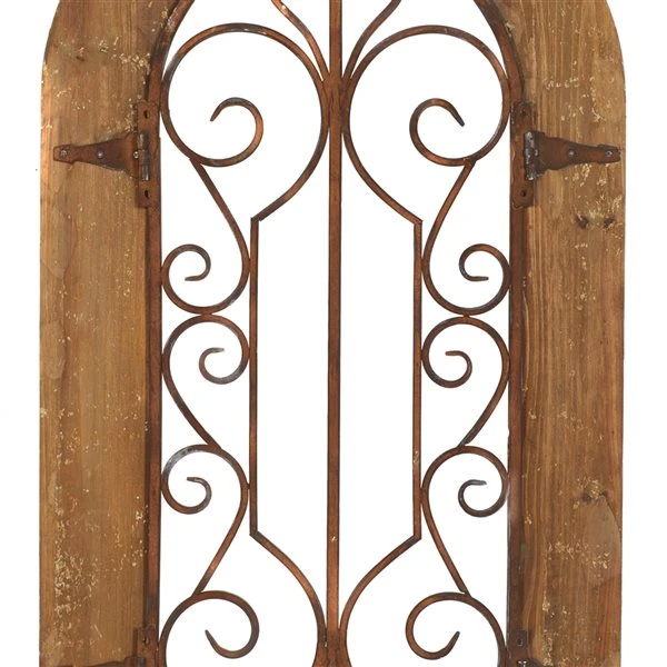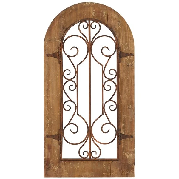 - Versatile, distressed natural brown tones throughout the wood frame with an arched window silhouette