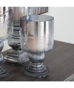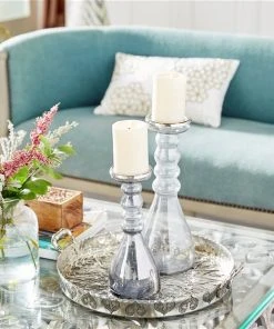 Grayson Lane Set of 2 Contemporary Clear Glass Pillar Candle Holder