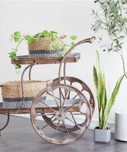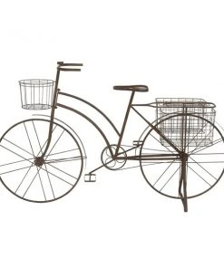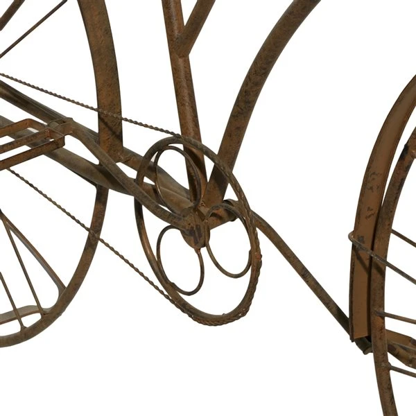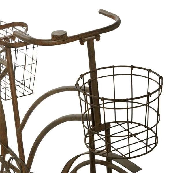 - Features a standing bicycle planter in brown finishing for antique feel