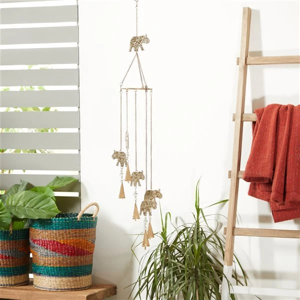 Grayson Lane 39-in Gold Metal Beaded Baby Rhino Wind Chime with White Glass Beads