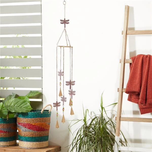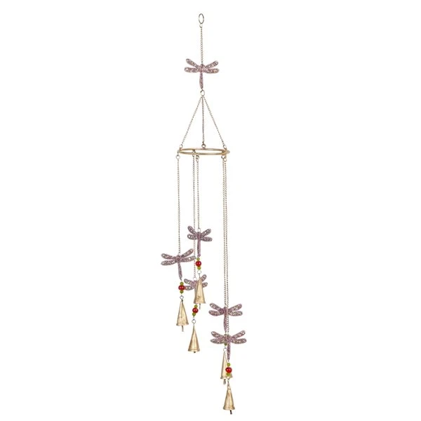 Grayson Lane 39-in Pink/White Metal Dragonflies Wind Chime with Multicoloured Glass Beads