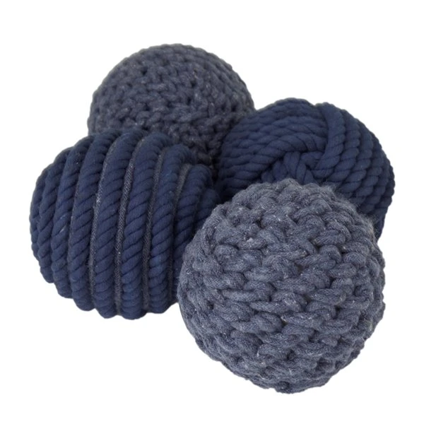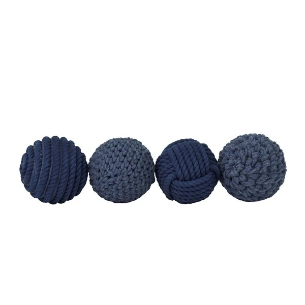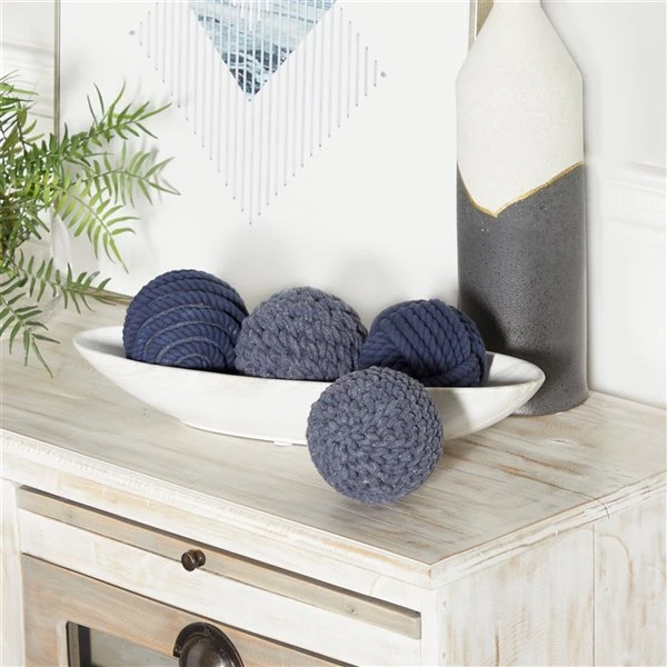 Grayson Lane 4-in x 4-in Coastal Decorative Orbs Blue Cotton – Set of 4