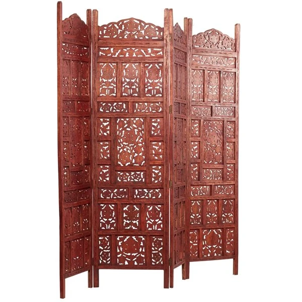 - This elegant wooden room divider features a naturally textured red mango wood finish