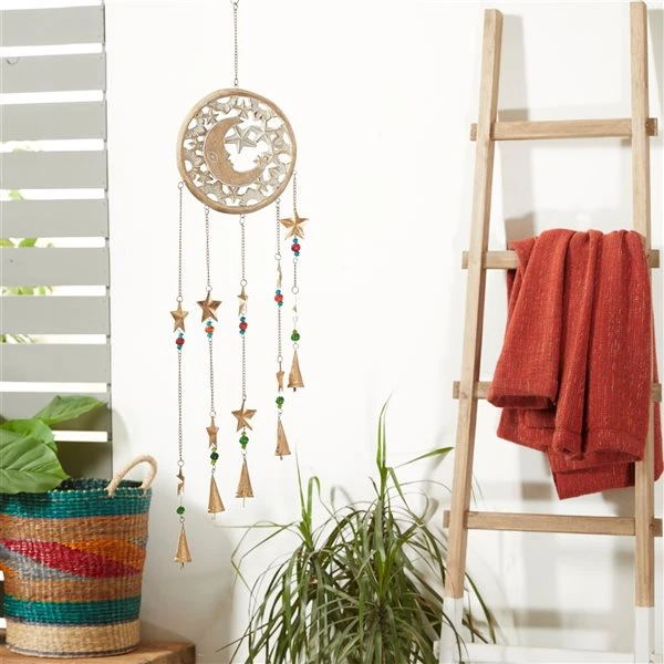 Grayson Lane 41-in Cream Wood Crescent Moon and Stars Wind Chime with Triangular Bells