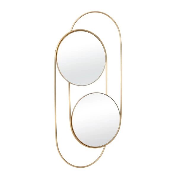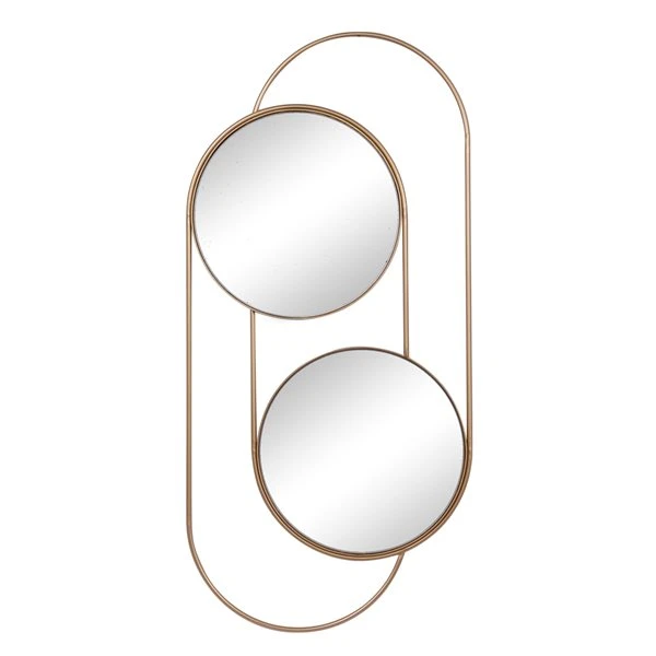 - This wall-mounted piece has two round mirrors and an oval-shaped loop frame