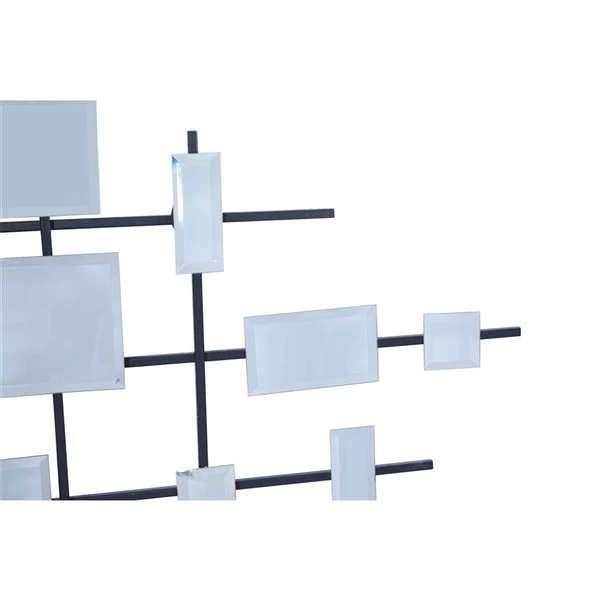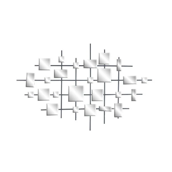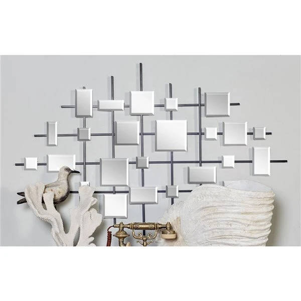 - Showcases an elegant collection of square-shaped bevelled mirrors floating on a lined grid forming an abstract geometric design